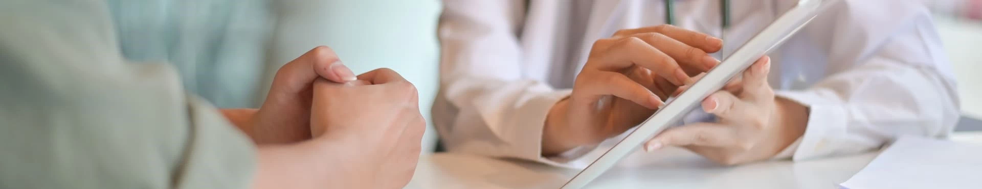 Руки пациента и врача на столе